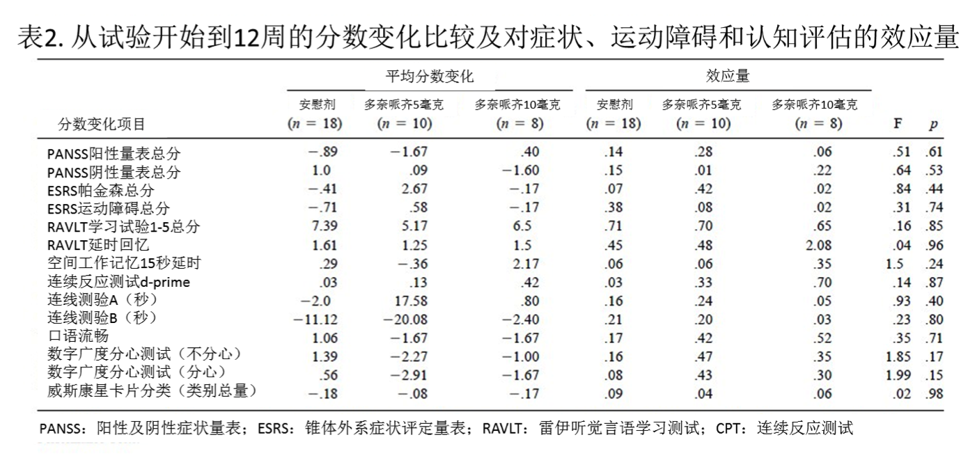 主要是因为一部分论文数据资料数据资料有实证认为类胆碱药物剂量几率对精神状态裂变症临床表现(Edelstein几人,1981)和锥体内系临床表现(Caroff几人,2001)有改善效用,有实验对多奈哌齐在以上临床表现各个领域的改善效用也做了探寻和概述。多奈哌齐5毫克和10毫克改善与安慰的话语女朋友剂改善好于,在PANSS阳性反应临床表现(F=1.74,df=101,p=.18)和弱阳临床表现(F=.38,df=100,p=.68)的换算中,并不会特殊一定的不一致性。其次,多奈哌齐改善和安慰的话语女朋友剂改善在帕金森症(F=.51,df=101,p=.6)与造成锻炼认知障碍(F=.01,df=101,p=.99)换算的ESRS综合评价中也不会特殊一定的不一致性。在其余各种测试结杲中也末见很多特殊一定的不一致性(见表2总结会)。