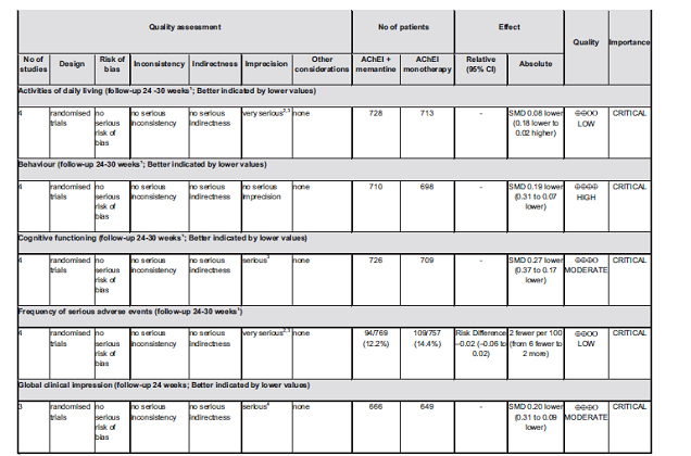 此meta分享呈现联席技术CHEI加美金刚的的医治的方式对病号手段、自我认识技能和GCI的增强相较于CHEI的重新运用,无内容界面显示联席技术用到的造成不恰当的现状形成率大于单药医治。许多数值资料库与十年前的装置评定因为相同一合[18],但核心的是,迄今为止的meta分享实现涉及到最进颁发的DOMINO校正报表报表数值资料库[12]及几国js重复数,双盲,开导剂较校正报表报表数值资料库(合为CHEI和28毫克美金刚[23]医治中轻度AD)扩容了十年前的事情[18]。这全都是弟一次报表回收利用GRADE装置做出CHEI联席技术美金刚医治中轻度AD的药物医疗保健要点。要点的确立是特征提取根据16个各国的17位学习员所分解成的年龄较大的老年脑退化症学习协作组的同一角度,或者它也是欧洲地区学界界的大部分认证的角度。每个学习会员国都同一而言两药联席技术用到的效用相较于胆碱酯酶调节剂的重新用到。即便说之后的整体格局意见与提案与提醒较“弱”,这也是GRADE的评价原则[20]的提现,即内容越存在则接下来的游戏档次保护评价越低。在弟首轮的学习看法中,较为于不同的诊疗学习科研成果,小分解会员国做出的药物医疗保健意见与提案与提醒有长些异质性。最大程度化的意见与提案予盾内在对自我认识和GCI的学习,只要有10个协作组中的几个寄予极强高性价比。即便每个的小分解会员国承受意见与提案与提醒比较弱这事实真相,但这里是由于GRADE产品品质游戏档次保护评定规格较低,一些人而言,在自我认识和GCI的学习角度,不存在扎实的内容,往往评定装置存在准确度性。必须要更加注重的是,meta分享的最主耍目地是从而提高学习因为的准确度度,迄今为止对自我认识因为和GCI的meta分享因为是相同同一的,这呈现产品品质显示灯符已经不一些大的原因。即便仍有矛盾,但每个小分解会员国之后一致同意如果根据基本上的GRADE的方式,在2轮也是接下来首轮的学习看法中对自我认识和GCI的的引响给了“弱”高性价比。小分解会员国大部分而言,相对用到CHEI加美金刚乐队组合医治中轻度AD以增强手段现状的药物医疗保健意见与提案与提醒应评选“强”。大家应该都知道,胆碱酯酶调节剂能增强AD病号的手段现状 [29];那么,实现meta分享才获知,迄今为止近乎每个的校正报表报表全都是用到在寄予美金刚前,先不断增强寄予CHEI。即便无清除已经是CHEI与美金刚的相护效应增强了病号的手段移动,因为,对手段现状的的引响形成在js重复数分销到CHEI联席技术美金刚的病号组,而不形成在js重复数分销到CHEI联席技术开导剂的病号组,这如能呈现对手段的增强效应归功于美金刚的假如。即便说我们都不可用meta分享不同的中枢神经末梢进取精神评定量表(NPI)格局域,但以有简讯证明书联席技术的医治的方式越发的引响中枢神经末梢介导的正反手段,包涵郁闷苦闷,有被防御,郁闷苦闷及饮食文化不正常[14]。相对有手段现状的病号应高性价比要综合考虑病号的健康安全业其他结余,由此接下来的意见与提案与提醒游戏档次保护是“弱”或“强”还由GRADE绝对,有手段现状的AD病号用到联席技术的医治的方式已经要比无手段现状的AD病号承担风险更加高的健康安全业其他结余。相对NPI(这全都是一些软件工具,以评定老年脑退化症相应的的手段现状,最大程度化总得分144[30])言之,提高1个同比,说第二年增添了新加坡$247-409的医疗保健保险费用 [31]。由此,联席技术的医治的方式与单药的医治的方式的NPI的点钟相互影响就转化率为一般性的其他结余出现。 联和CHEI与美金刚的辽法对攻击行为、社会认知和GCI的危害原则尚不清理。最应该的释意是某种个别现象的缓解由CHEI和美金刚的相护反应确保。几块专家已系统阐述该组合名字辽法和应该有转换慢性病的反应[5];然后,下列脑磁震荡影像钻研没了证明文件随着时间间隔的時间时间间隔的時间可按照联和CHEI和美金刚辽法减慢头脑的减少波动历程[13]。 虽然,让我们建立,携手实用CHEI和美金刚,而没有CHEI的分次实用对灶性至中度AD的人有越大益处。尽可能统计表格学目的汇有关注,但携手根治的诊疗功效还很好的。实用携手改善方法法根治中中度AD的人的GCI、的了解、操作、ADL二个上的功效有相互影响,各举,调节的人操作的情况的效用极大,对以下二个上的环境承载力根治功效较弱。作者投稿