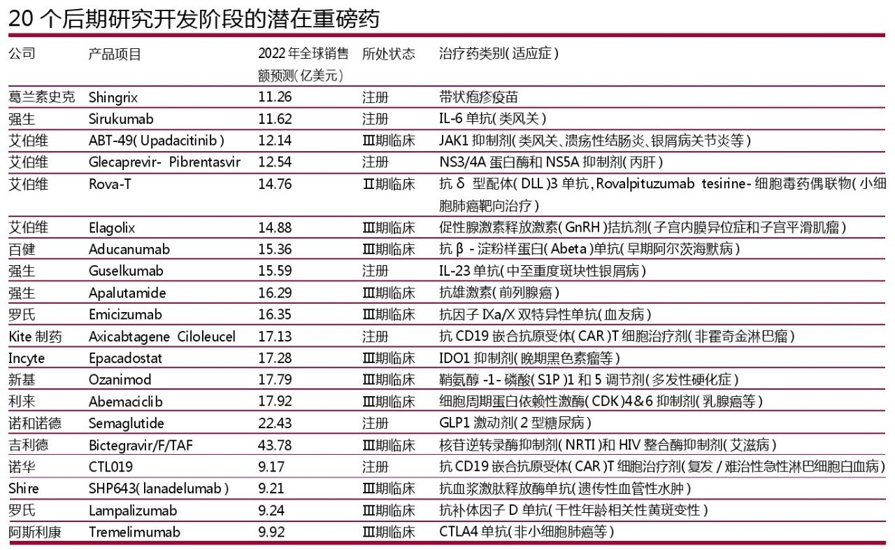 艾伯维企业有4个所处晚期开发管理的抗癌药物被记入20个竞争力的内容名单表,已超各种企业。此类抗癌药物的内容为Rova-T(1派件美金,2023年平均推销额,所填)、Elagolix(1派件美金),同时颇有发展的JAK1可以抑药物制剂ABT-494(1两亿美金)和Glecaprevir/Pibrentasvir(1两亿美金)。这三个不确定性抗癌药物平均极限年推销额总计为54亿美金。仅仅,定性分析认同艾伯维(往年注资9派件美金)收购司Stemcentrx微生物企业属超支情形。只不过这三个抗癌药物都获得了成功率,也抵不上Humira,以至于艾伯维要堅持对Humira的专业确保。