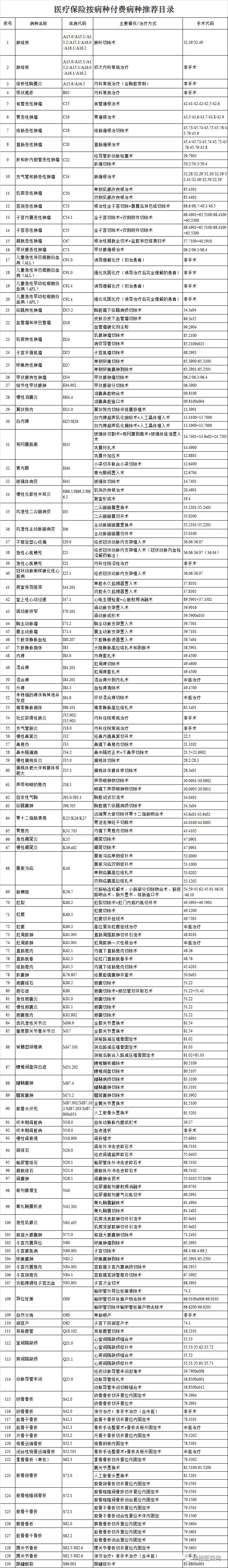 人社部发布130个按病种付费推荐目录!